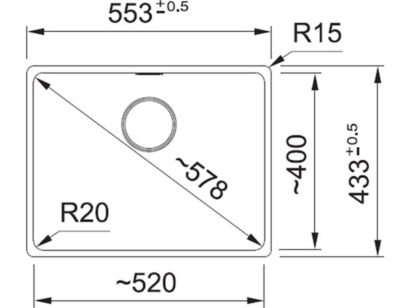 Размер мойки: 553х433 мм.